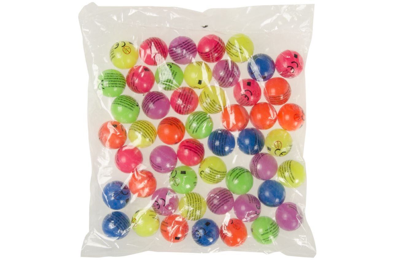 Stuiterballen 32mm Neon mix verpakt per 50 stuks.