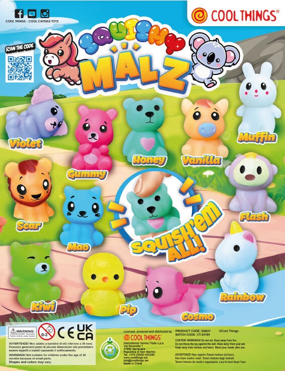 Capsule 50mm squishy malz 100 stuks, deze bal met verrassing bevat een squishy malz animal figuur.
